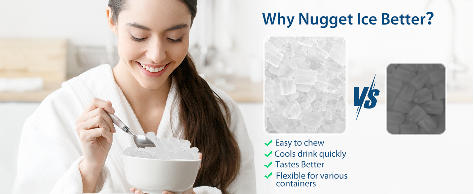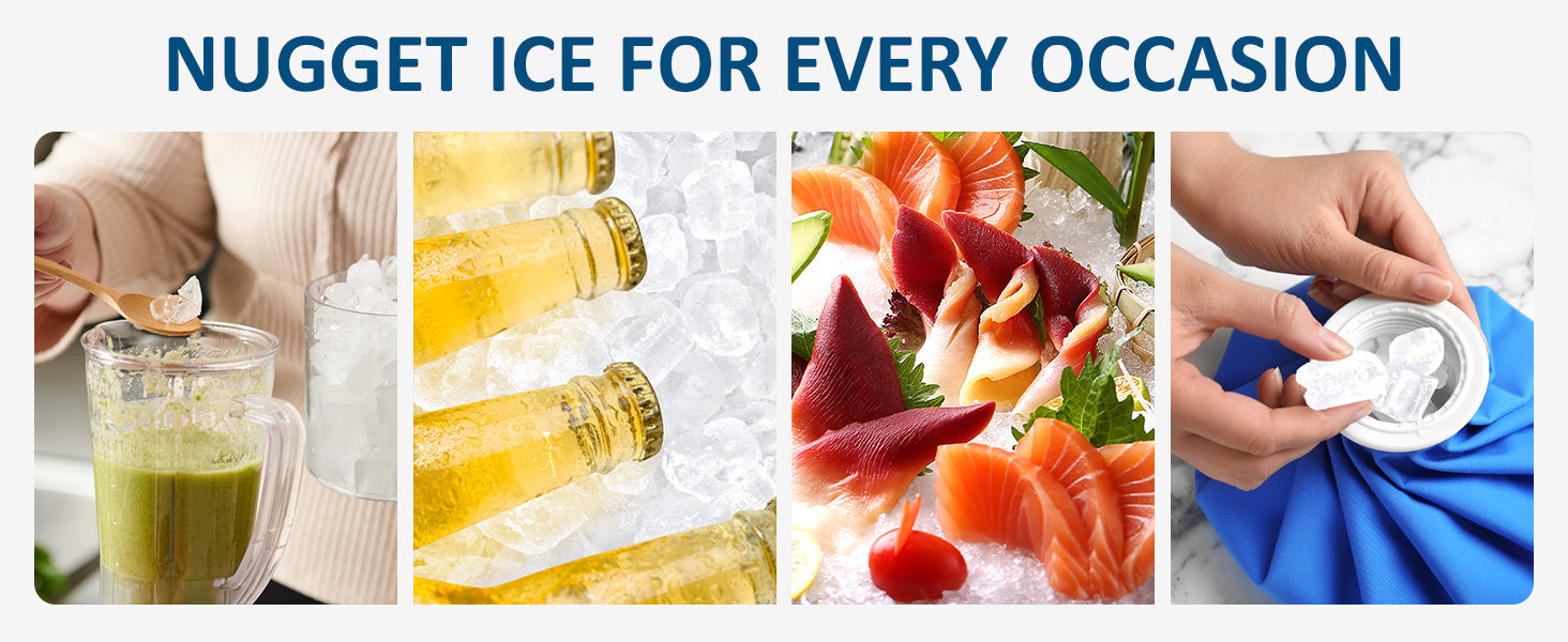 - It makes the delicious taste of chewable, soft nugget ice that enhances the flavor of your favorite drinks. Enjoy restaurant-quality nugget ice in the comfort of your own home.