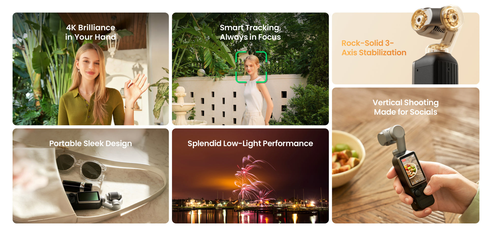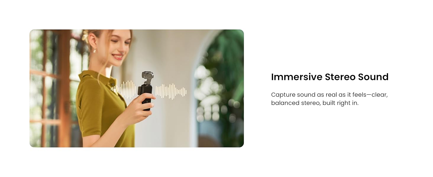 Say goodbye to shaky footage. A true 3-axis mechanical gimbal delivers exceptionally smooth video, even while you're running or hiking. Get professional, steady shots that electronic stabilization (EIS) can't match.