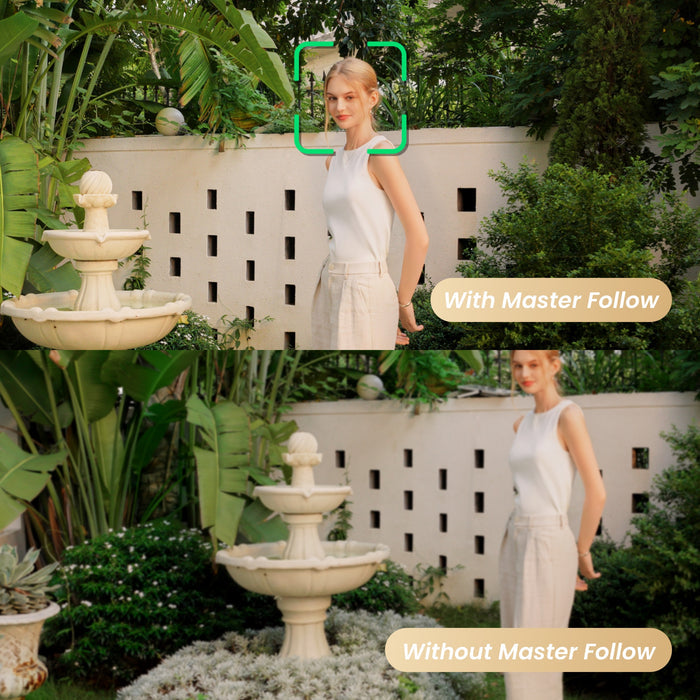 Let Master Follow be your personal cameraman. This smart tracking technology keeps you perfectly centered in the frame as you move. Mount it on a tripod to jump, dance, or present—you'll always be the star.