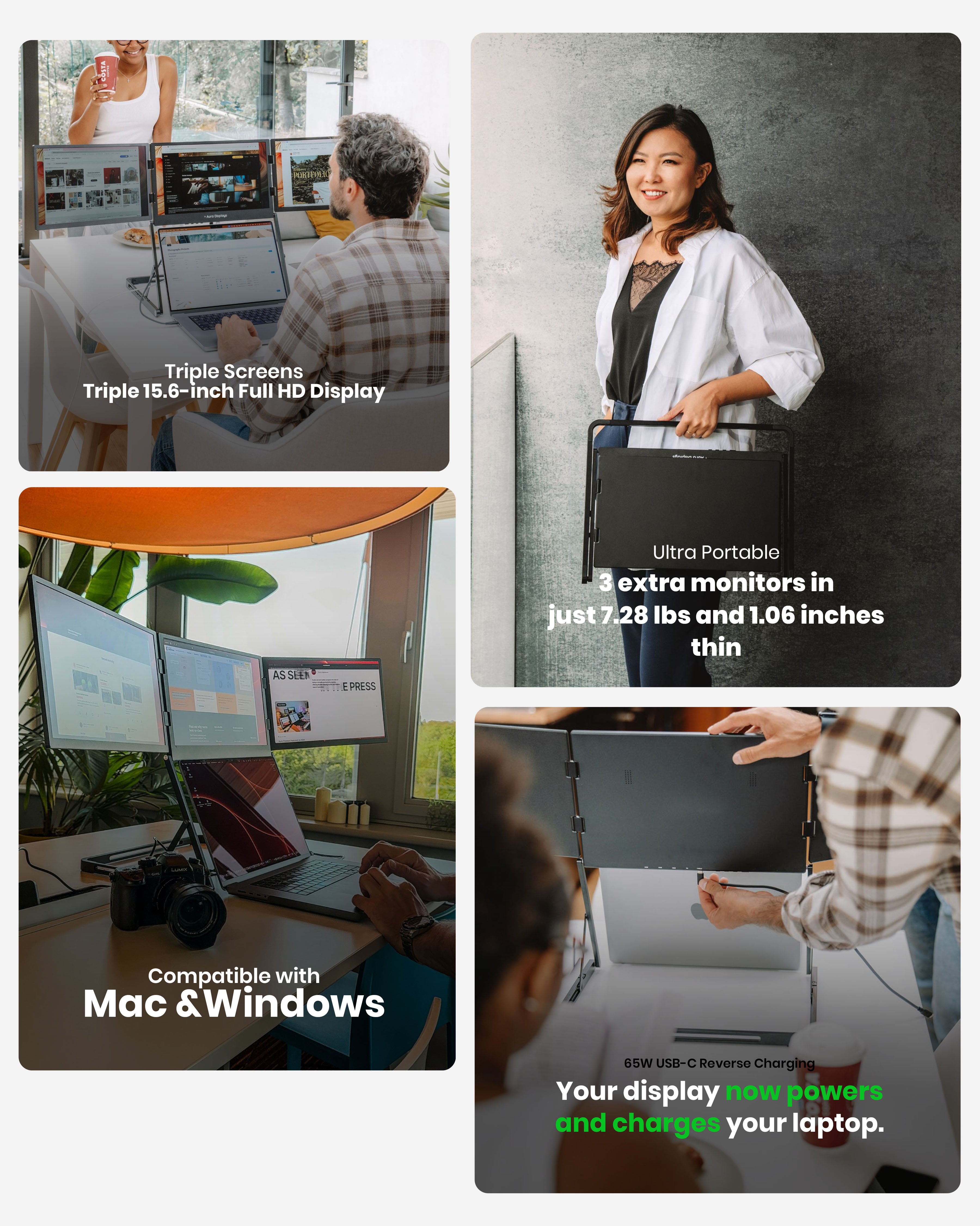 ENJOY THREE MONITORS ON THE GO, WHEREVER YOU ARE